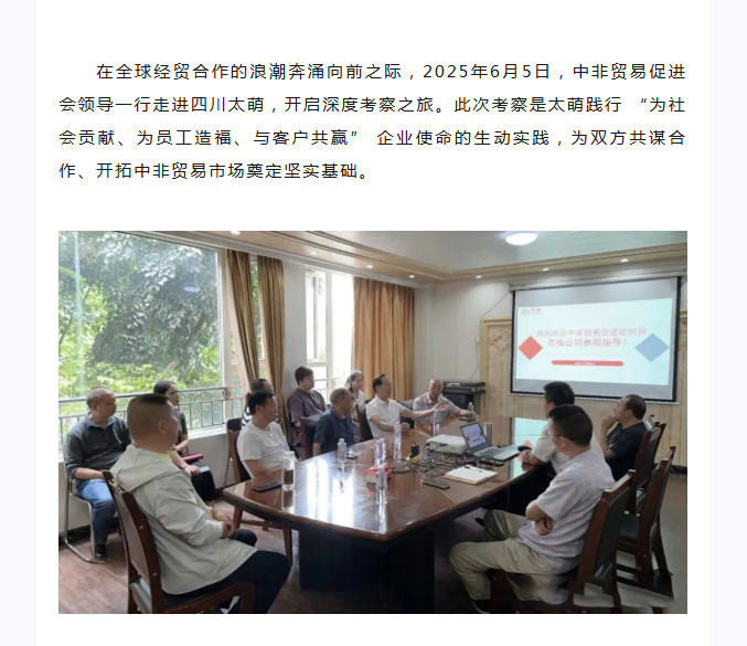 【太萌資訊】熱烈歡迎中非貿易促進會領導蒞臨四川太萌參觀指導!?