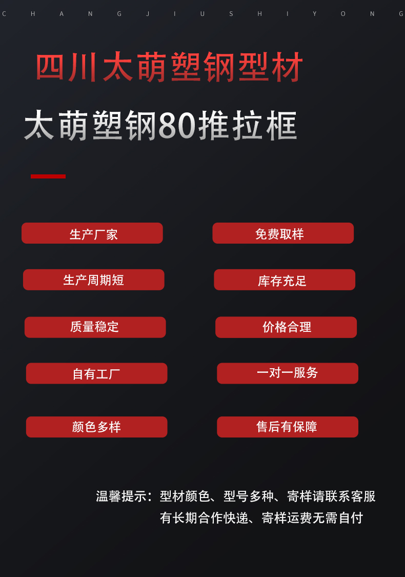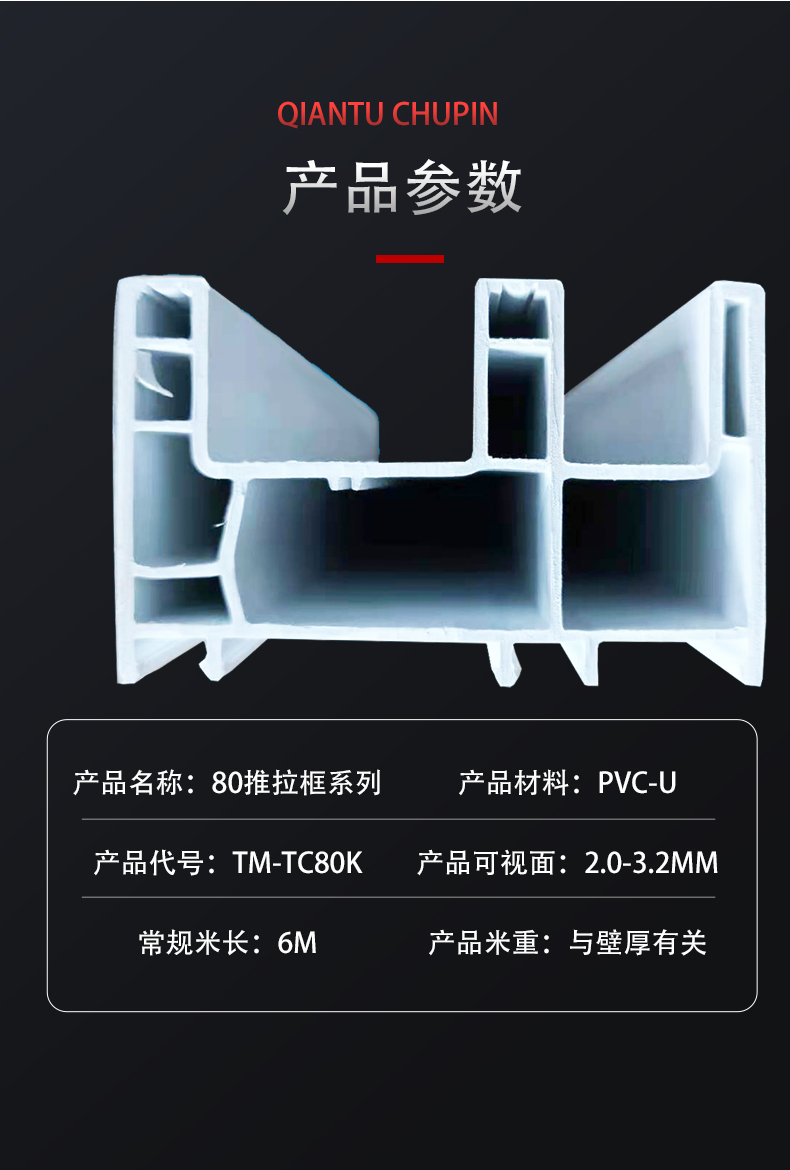 四川太萌塑鋼門窗型材廠家生產(chǎn)的80推拉框顏色有:白色、單、雙面共擠、通體彩色、型材壁厚多種。