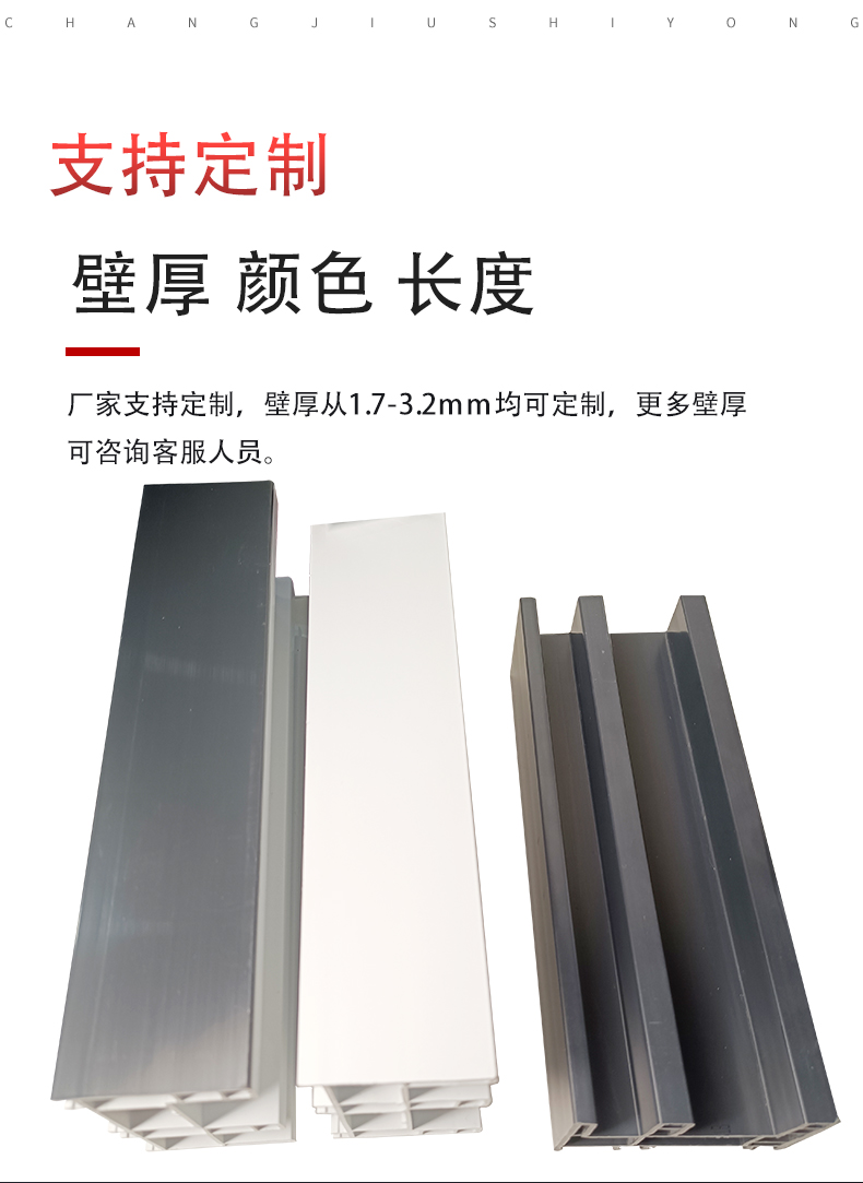 采用新技術(shù),新配方,確保產(chǎn)品色澤一致,以及采用先進焊接平整工藝,使結(jié)構(gòu)更堅固,質(zhì)量更放心。本系列產(chǎn)品是以塑代木……